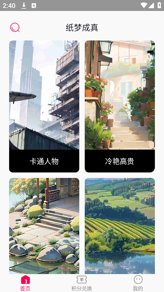 3.进入纸梦成真app首页之后可以根据分类点击你喜欢的壁纸