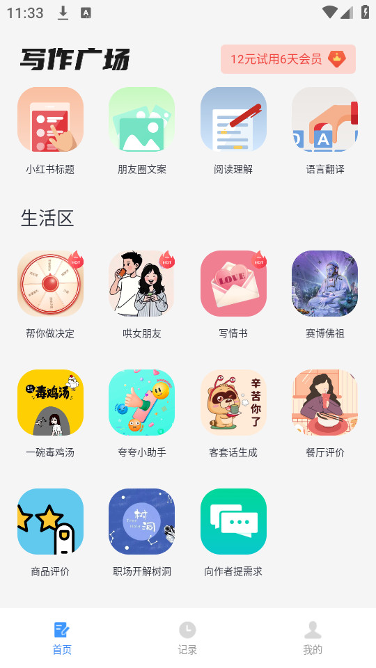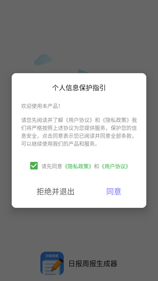 1.下载安装并打开日报周报生成器app,点击同意,同意隐私政策