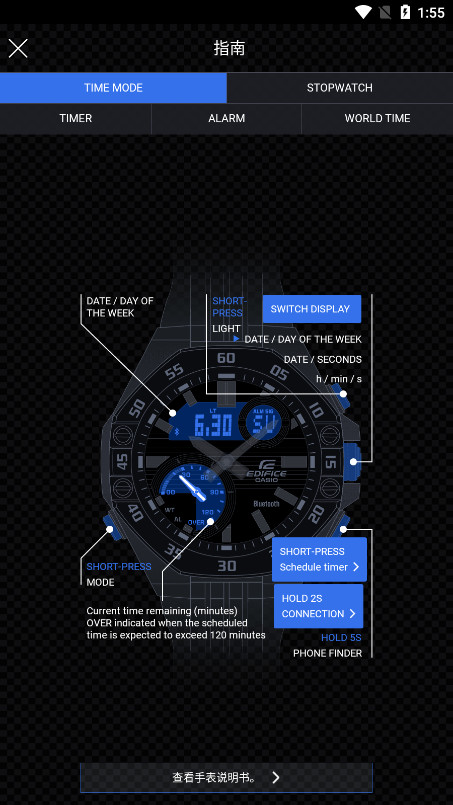 4、在使用过程中有出现闪退或是其他系统问题,可以点选【查看手表说明书】来到EDIFICE Connected安卓网页端,了解各项问题具体的解决方法。