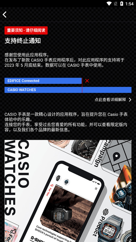 该应用程序的功能将被转移到新的手表应用程序 CASIO WATCHES。