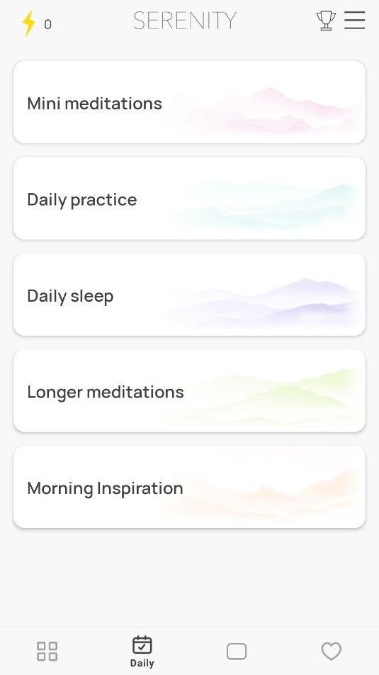 每日冥想:每天提供不同的冥想练习,帮助用户保持定期练习。