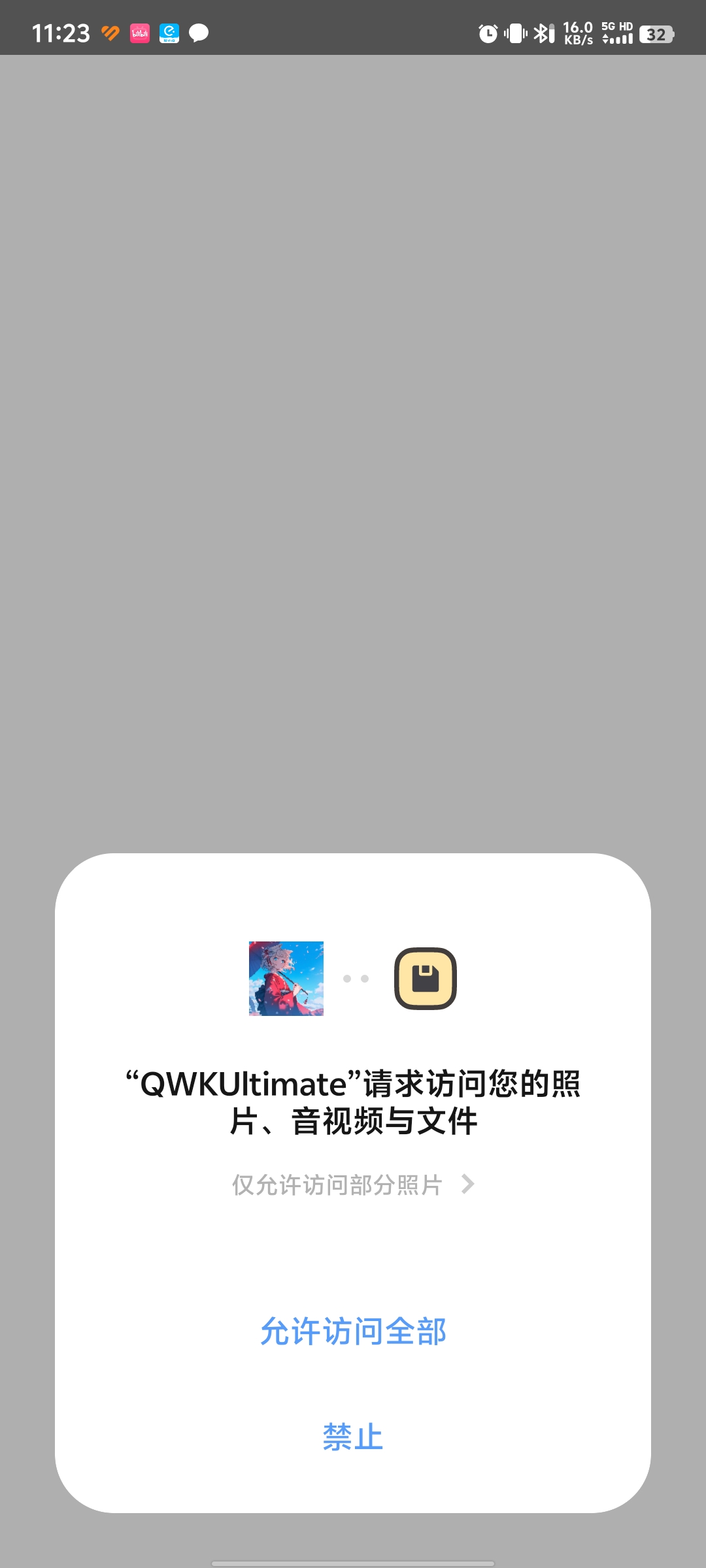 下载安装并打开QWKUltimat app,点击允许访问全部