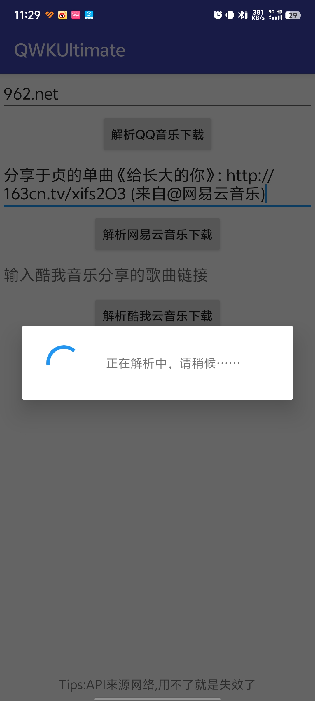 一键解析,轻松获取:只需简单输入歌曲名或歌手名,QWKUltimat VIP即可迅速为您解析出各大平台上的音乐资源,让您轻松获取心仪的歌曲。