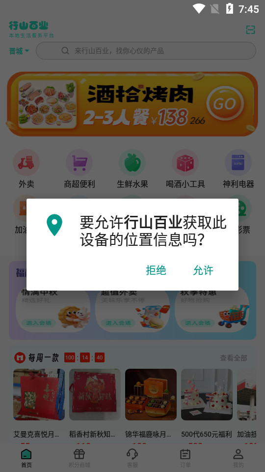 下载安装并打开行山百业app,点击同意,同意隐私政策