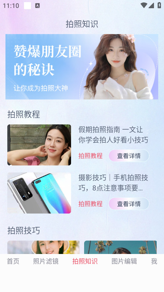 拍照知识界面能够查看各种拍照相关的知识