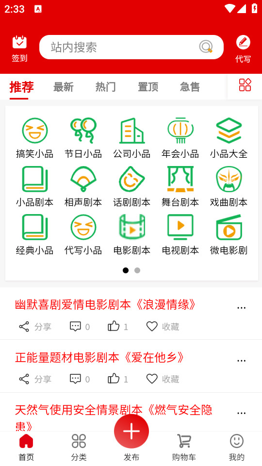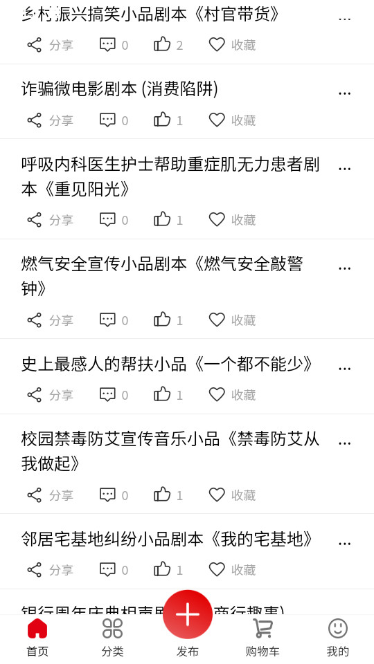 【剧本购买】:大家都可以在这里购买到自己心仪的剧本,全部明码标价,成千上万的小品、相声、话剧、舞台剧、戏曲、电影、电视剧、微电影、动漫、短视频、歌词、歌舞剧、课本剧、心理剧、童话剧、广播剧、演讲稿、诗诵读、脱口秀、音乐剧、情景剧、快板、三句半、哑剧、双簧等剧本供您选择,是您寻找编剧和剧本的理想家园。