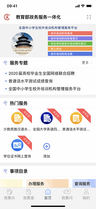 教育部政务服务app是一个基于统一技术标准、统一视觉展现、统一服务管理、统一系统支撑、面向自然人,法人和其他社会组织提供教育部政务服务相关资讯、服务评价、问题咨询投诉、证照查询、办件查询、查询服务事项的移动端办理入口。为广大群众提供更便捷的政务服务,真正实现“掌上办”。