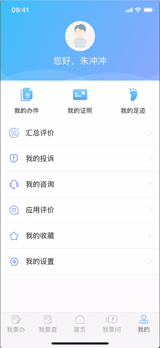 1、进入【我的->我的办件】;