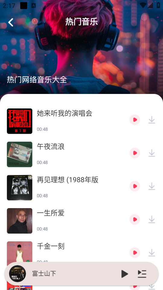 播放界面的下载按钮,和音乐后面的下载按钮都能够直接下载音乐
