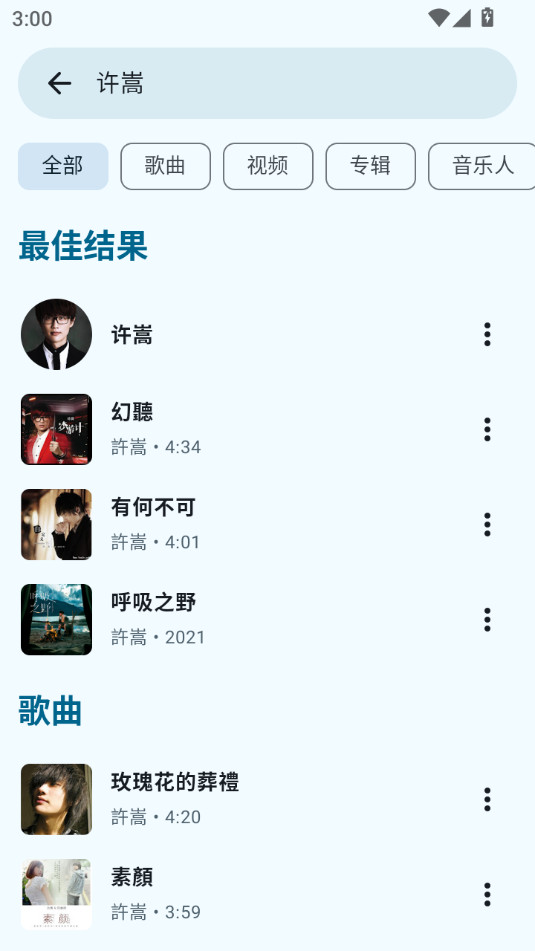 下载安装并打开outertune app,进入outertune之后,在上方搜索框搜索你想要的音乐或者歌手