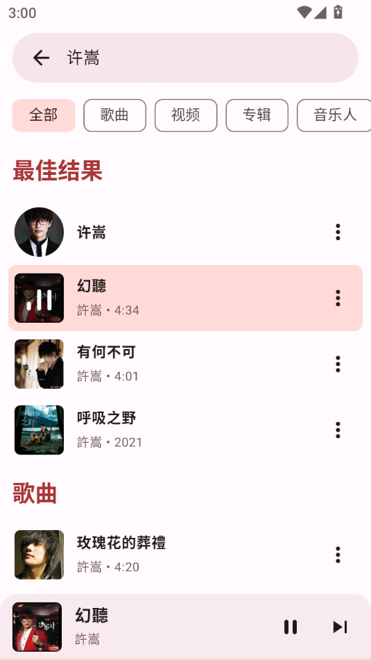 搜索完成之后点击你喜欢的音乐就能够直接进行播放了
