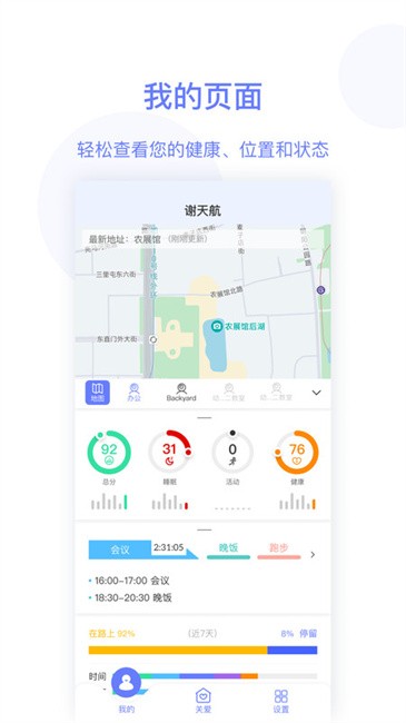 1,简爱通过位置信息进行定位分析,帮助用户及时了解老人与儿童的行踪。