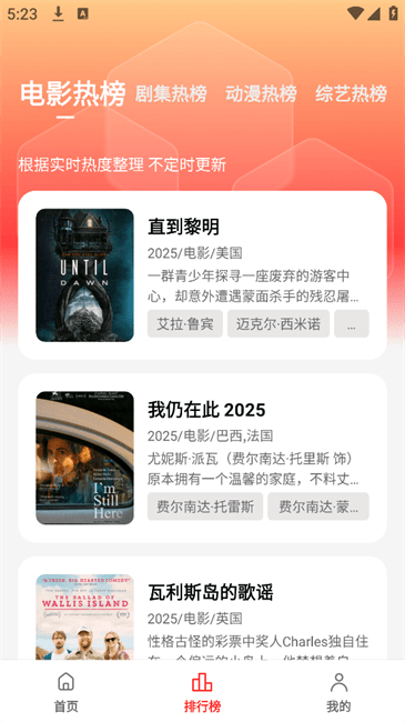 1、热度排行推荐:通过排行榜功能,依据热度对影视进行排序,为用户呈现当下热门影视,帮助用户快速找到高人气作品。
