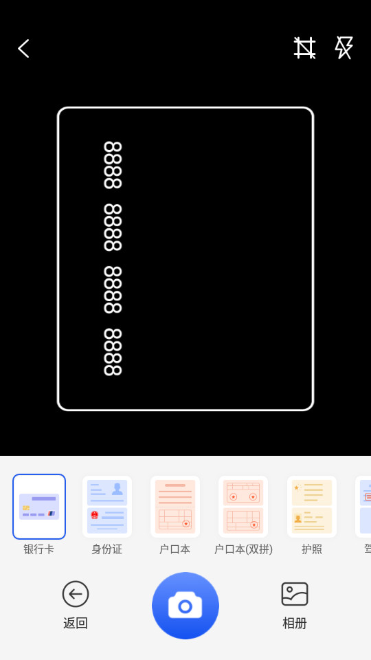 点击选择你需要扫描的证件类型,然后点击拍摄按钮即可
