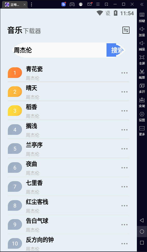 输入完成之后直接点击音乐就能够进行播放,点击右边的三个点可以进行下载