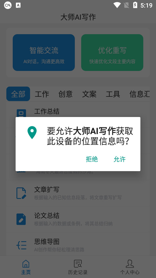 下载安装并打开大师ai写作app,点击同意并继续,同意隐私协议