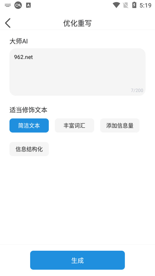 大师AI写作app是一款完全免费的AI创作平台,提供了丰富的工具,操作简单且实用。此外,它还允许用户自由调整各种参数,每一次的使用都有记录保存,方便快速分享自己的作品,不论是文章、文案、日报、绘画还是其他类型的创作。借助大师AI写作,日常工作变得更加轻松。