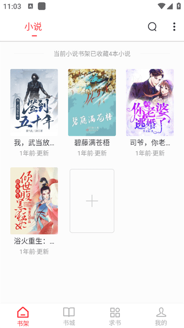 3、提供大书架可以把小说进行保存,让你管理阅读非常的方便轻松,书架上可以添加你喜欢的各类书籍。
