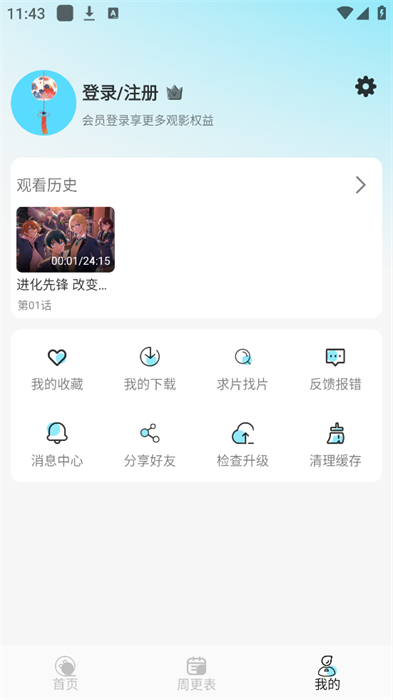 1、打开风铃动漫App可在首页通过分类推荐或搜索框以及周更表的方式来找到想看的动漫