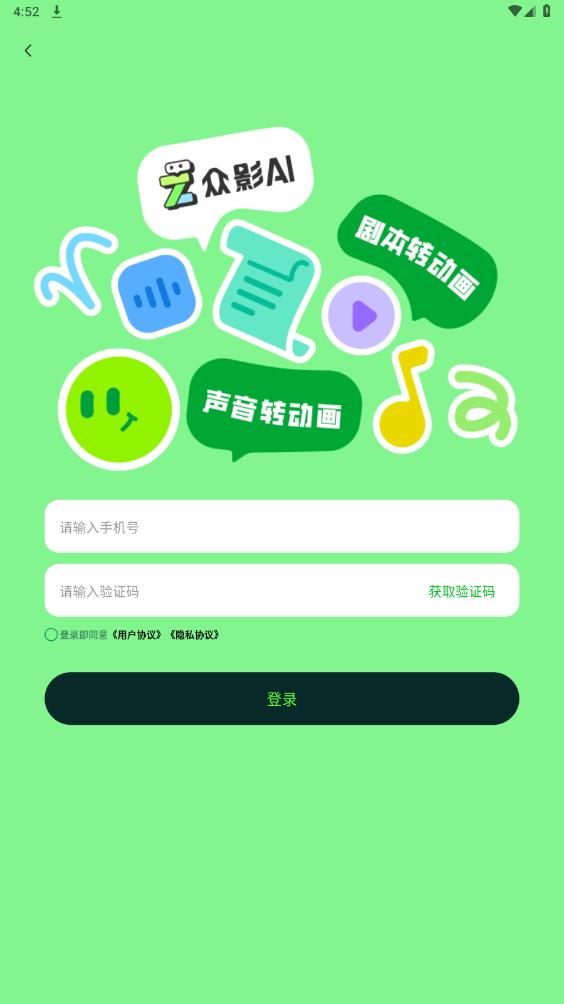 打开众影AIapp,点击上方剧本转动画或者声音转动画