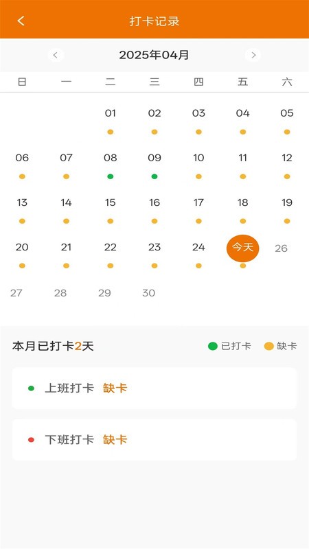 打卡记录:员工通过App完成上下班打卡,系统自动生成考勤报表。