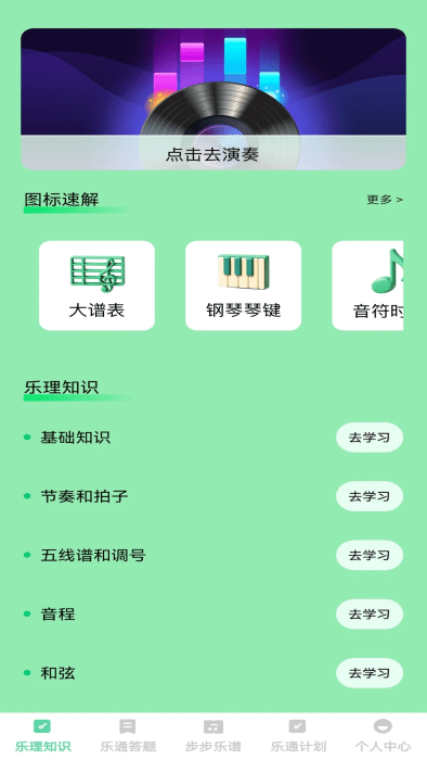 步步乐通app是一个学习音乐练习的软件,可以通过理论知识开始,各种乐谱可以在这里查看,通过实践与练习,更好的去掌握,还能开始图标速解,加上一些乐理的知识点都能从这里去学习,很实用的,一起来这里看看吧!