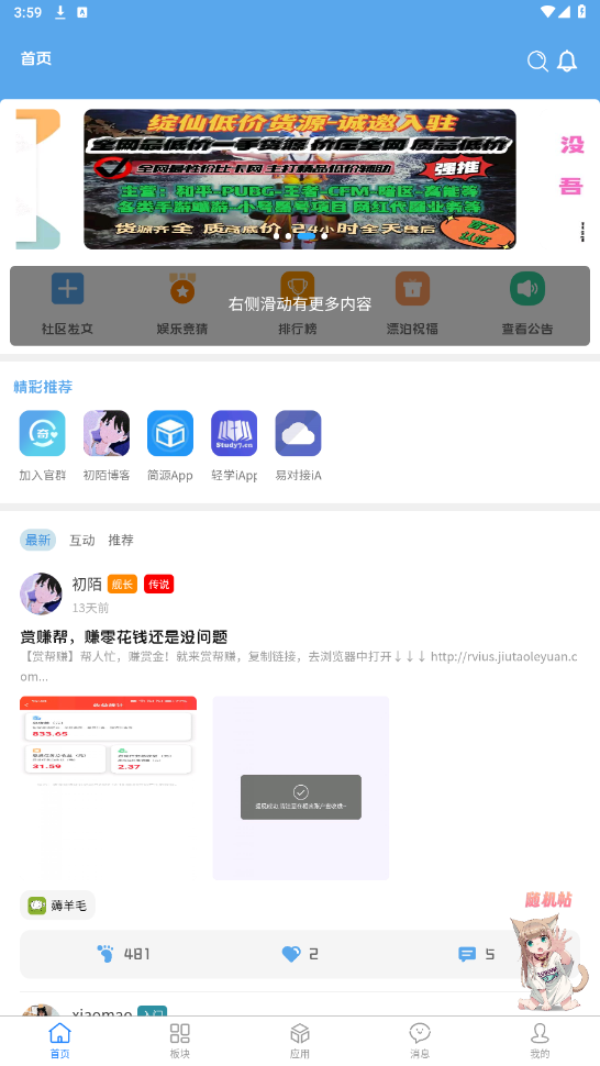 这是一个综合性社区app,提供游戏、社交和工具等多个功能。用户可以在此app中玩各种游戏,与其他用户进行社交交流,并使用各种实用工具。