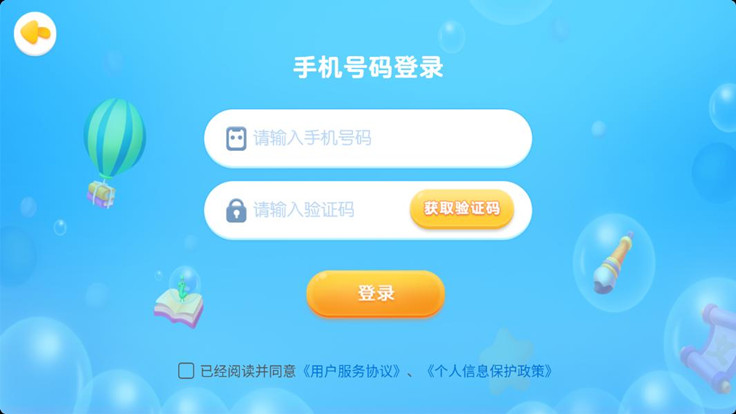 填写手机号码,点击获取验证码,填写验证码,勾选用户协议,点击登录