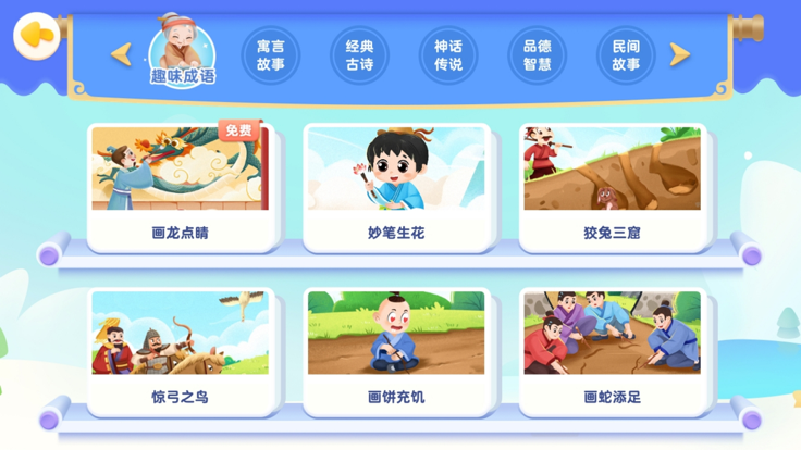 【绘本馆】精选趣味成语,寓言故事,经典古诗,神话传说,民间品德,智慧故事等,以互动绘本形式,分阶系统提升孩子阅读能力,帮助孩子积累知识。让孩子每天10分钟,自主爱阅读。