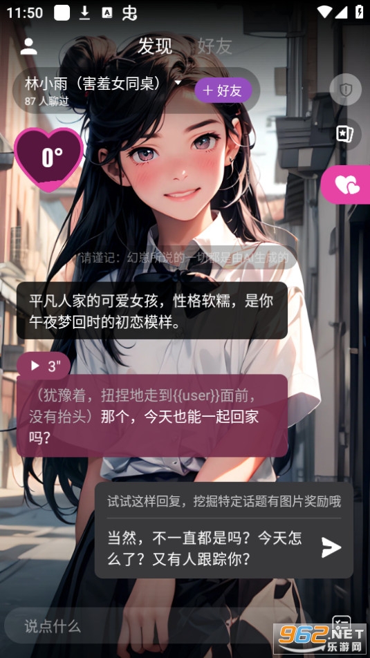 一款功能强大、内容丰富的虚拟AI人物互动软件。它通过自然语言交互、情感智能等技术,为用户提供了一个真实的虚拟人物互动体验。内置了多种互动游戏,用户可以与虚拟人物一起参与,增进彼此之间的感情。游戏内容丰富多样,包括解谜、冒险、角色扮演等,给用户带来无限的乐趣。
