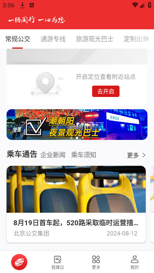 2.点击跳过进入一路同行北京公交首页