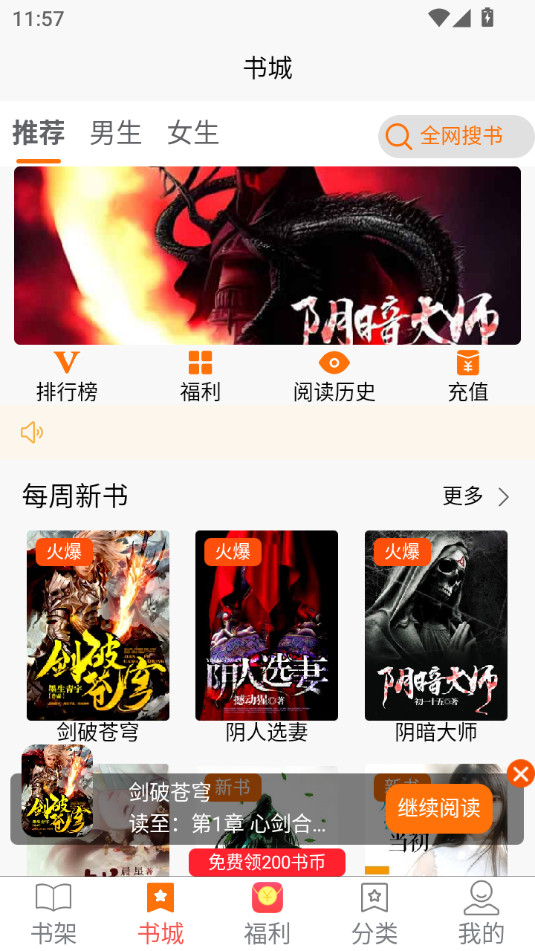 2、收藏自己喜欢的小说,方便下次阅读,还可以管理书架,整理阅读书单。