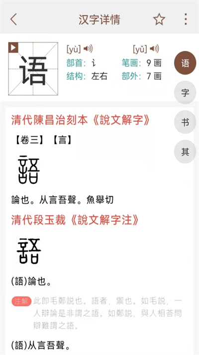 说文解字app手机版是非常实用的字典学习工具,用户可以在这里查询生字,支持多种拼音、笔划等多种查询方式,还为你提供最清晰明了的字词释义,是生活学习必备的好帮手。有需要的朋友就来下载吧!