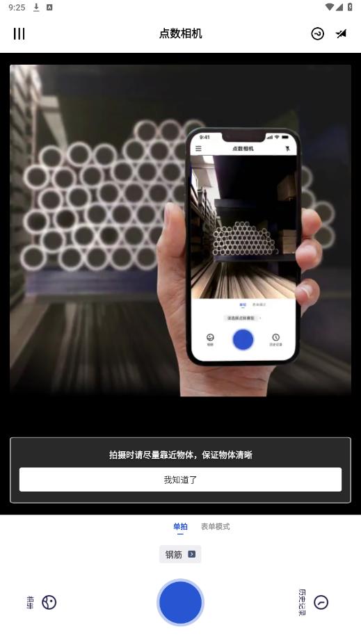 《点数相机》运用前沿AI技术革新清点方式。一键拍照,精准识别钢管、钢筋等多样建材及布料卷等物品数量,单张图片支持上千目标清点,高效解决繁琐清点难题。从工业现场到仓储管理,让枯燥耗时、易错的人工清点成为过去,助力企业提升效率,节省宝贵时间高达90%。更多物体识别持续升级中,引领智能清点新时代。