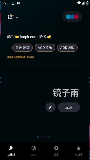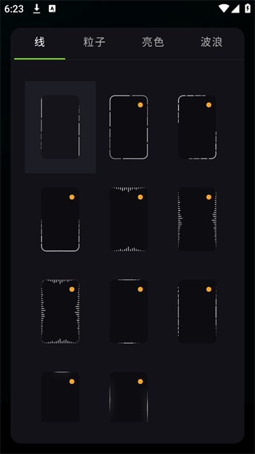 3、用户可将边缘灯设置为线、粒子、亮色、波浪等显示样式;