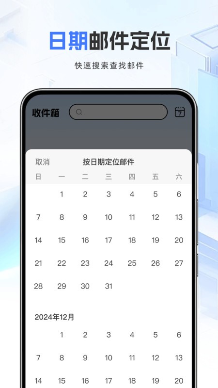 支持通过日期定位的方式快速查找邮件,便于能精准查看某天的往来邮件;