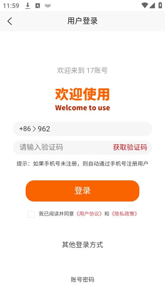 输入手机号验证码,勾选协议之后点击登录就可以自动注册登录了