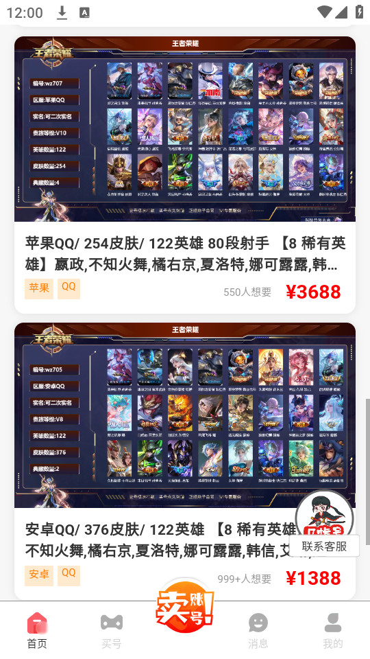 1、平台内各类游戏均支持一键快速游戏账号回收、买号包赔、资深鉴定师在线鉴定账号价值等服务。