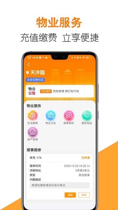 1、含有物业报事报修功能,以便能及时得到物业人员的服务