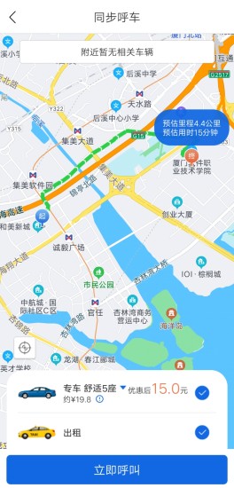 5、预约成功后可以查询车费情况,还能追踪车辆位置,查询司机当前位置情况;