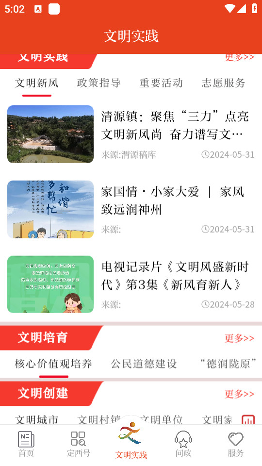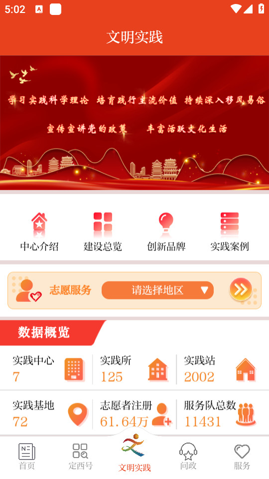 1.下载并打开新定西app,点击【文明实践】