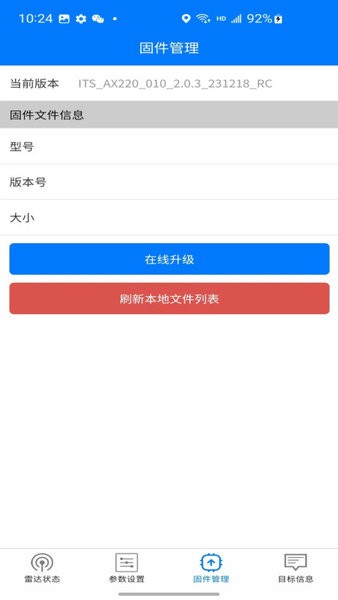 固件升级,在应用中就能给雷达的固件进行升级操作,便于体验更优质的雷达;
