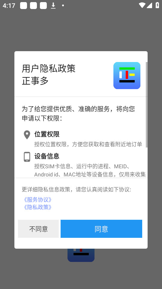 1.下载安装并打开正事多app,点击【同意】同意隐私协议