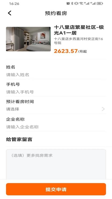 2、选择意向房源后,可直接在线填写预约时间与联系方式,与房主或管家快速约定线下看房。