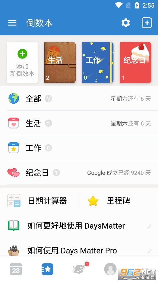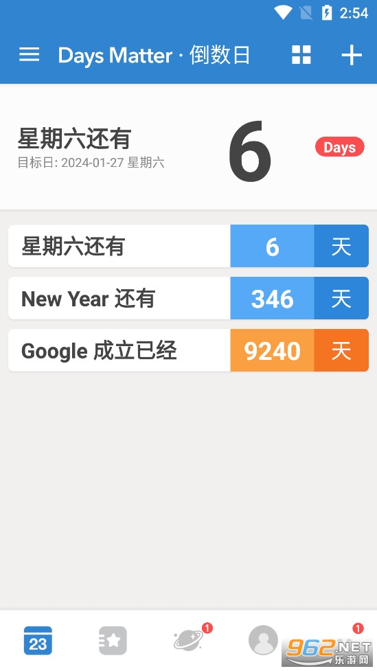《倒数日app》(DaysMatter)是一款纪录重要日子的倒数日软件,生活中有着很多重要的事情,可以使用本款软件来帮你进行记录,及时的提醒你,以免错过,比如结婚纪恋日、生日、发工资日、放假日等等,都可以以倒数的方式展现,可以自由的添加管理。
