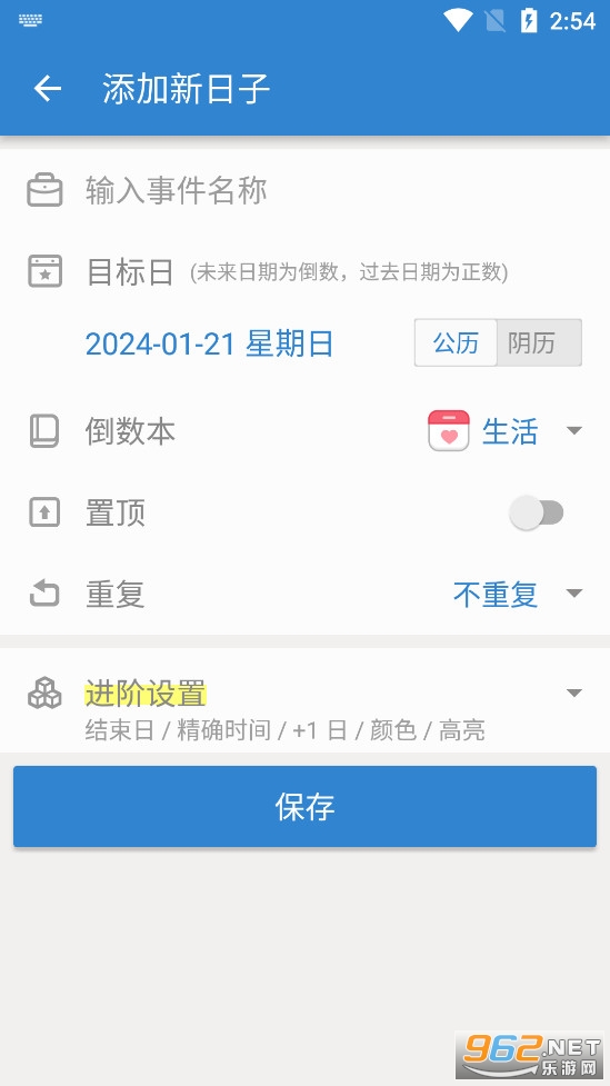 倒计时 将来的重要日子、时间点,计算天数倒计时并可设置提醒