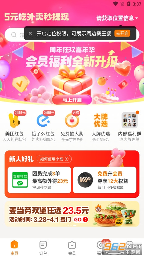 2、开启手机定位,让软件定位到用户所在城市和附近有活动的外卖商家,选择活动店铺,点击“抢名额”开启霸王餐之旅