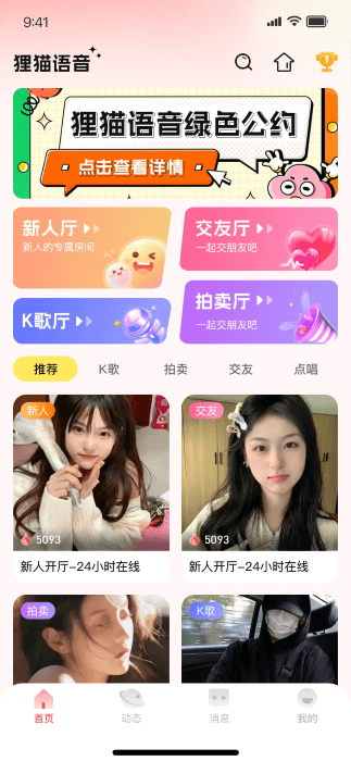 狸猫语音最新版是一个聊天社交语音app,用户可以在软件内聊天交友。用户可以创建个人资料,展示自己的兴趣和爱好。用户可以通过该平台与他人进行互动,结识 新朋友。