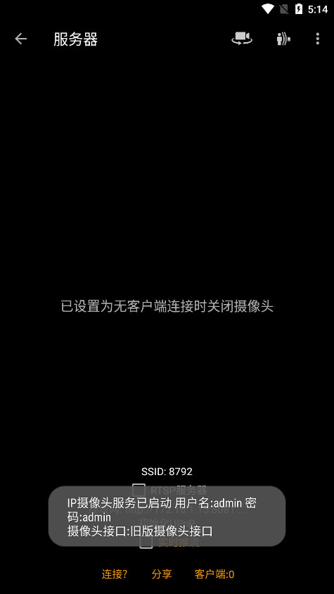 3.返回到首页,点击底部的“打开摄像头服务器”