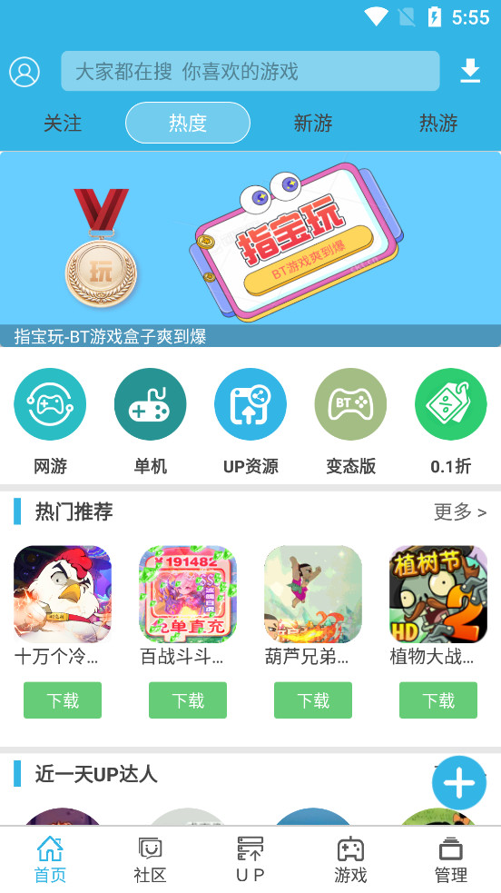 不错的游戏盒子,有着大量的资源可以免费使用,平台除了自己上架的资源外,还有着大量的up主上次的资源,可以前往各个论坛去交流探讨等,有需要的朋友可以下载试试。